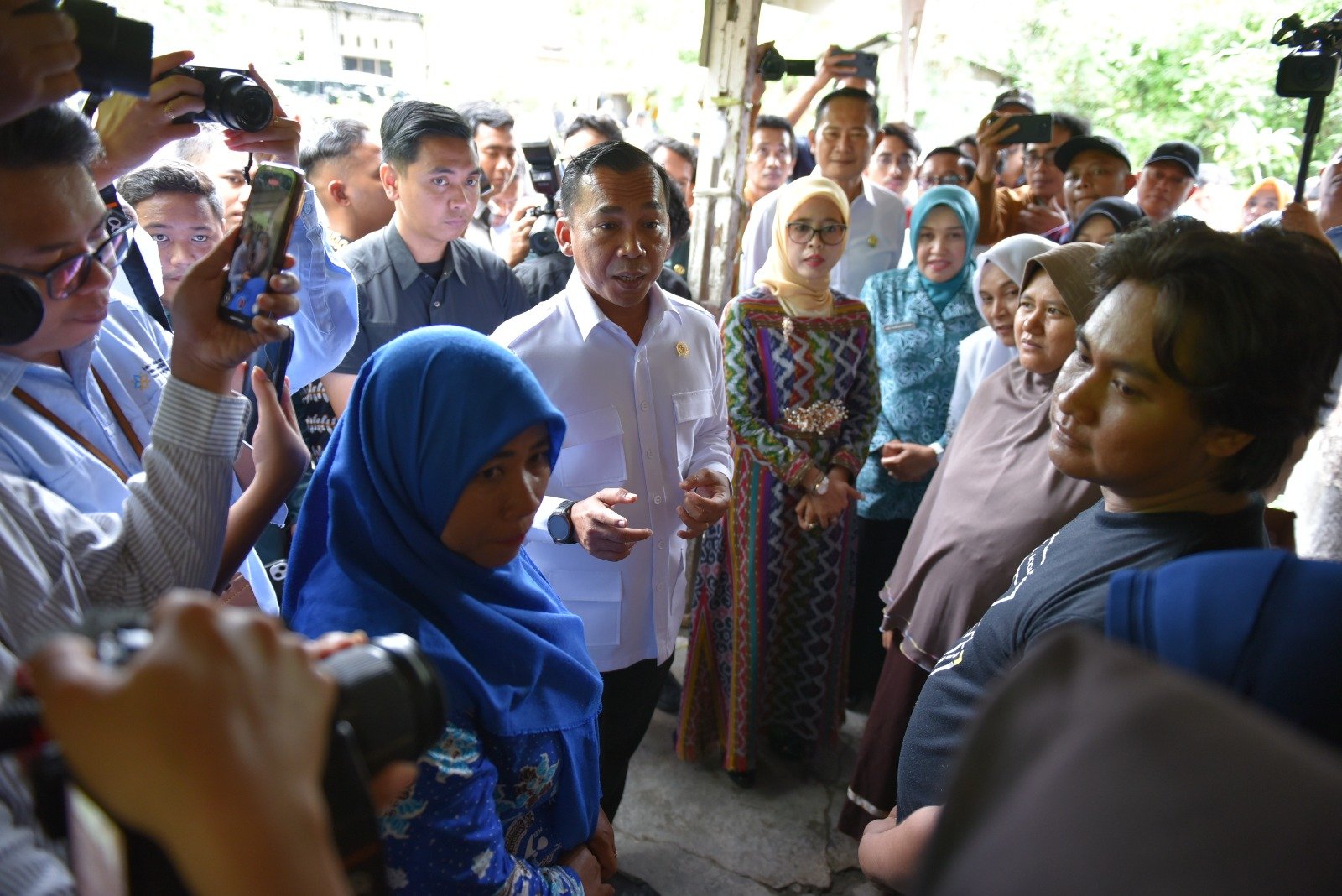 Mendatangi rumah seorang ibu hamil delapan bulan, menteri Wihaji langsung melihat kondisi bangunan rumah, dapur, sanitasi, termasuk kelayakan hunian. Dari temuan di lapangan, secara cepat Menteri Wihaji langsung mengambil keputusan.