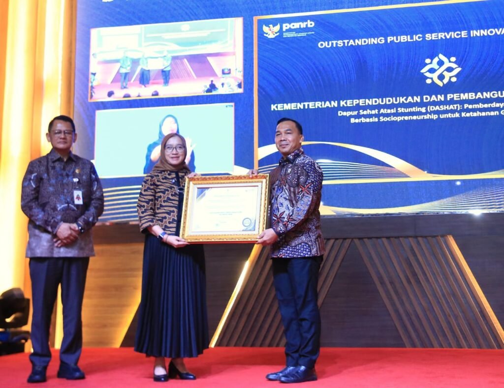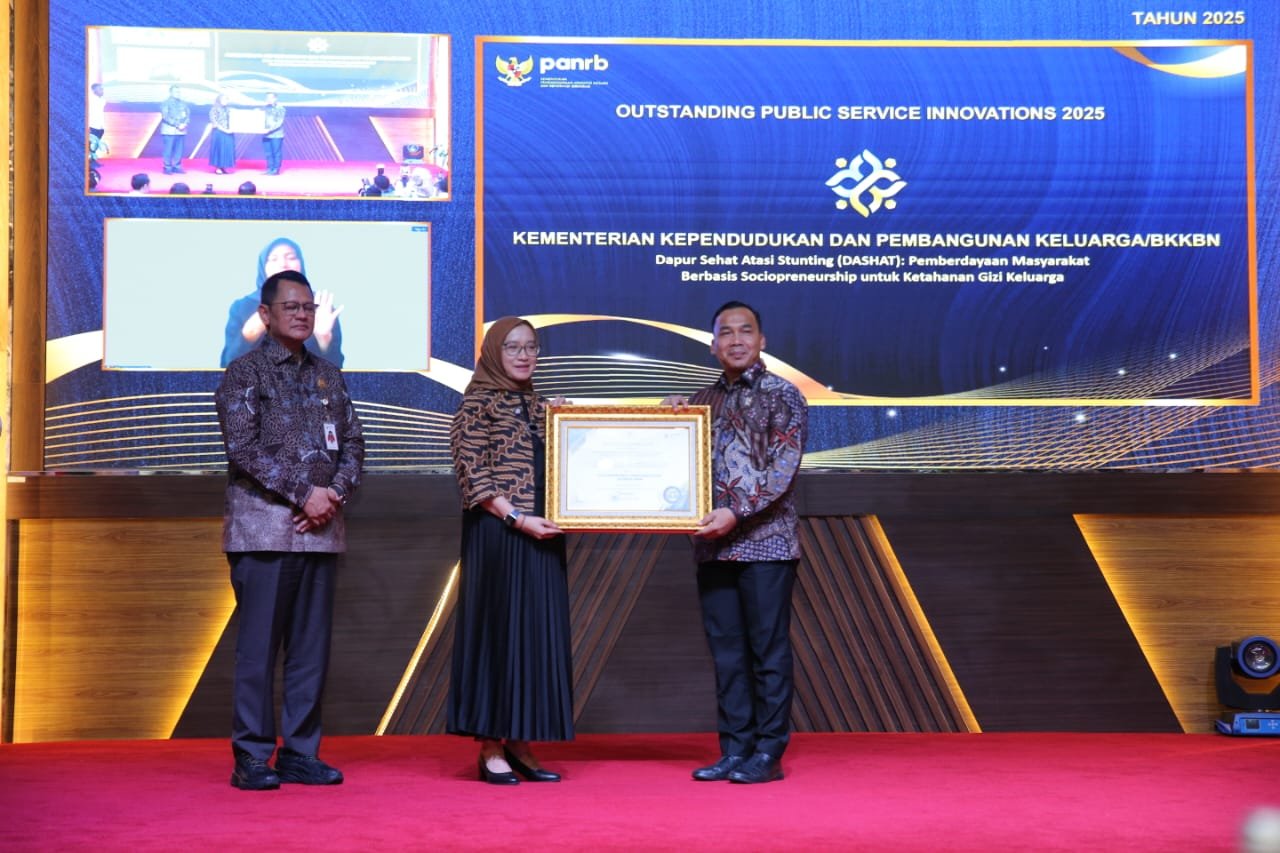 Keberhasilan konkret program “Dapur Sehat Atasi Stunting (DASHAT)” dalam menurunkan angka stunting secara signifikan membawa Menteri Kependudukan dan Pembangunan Keluarga/Kepala BKKBN, Dr. Wihaji, S.Ag, M.Pd, menerima Penghargaan Outstanding Public Service Innovations (OPSI) 2025 langsung dari Menteri PANRB, Rini Widyantini, di Jakarta, Senin (15/12/2025).